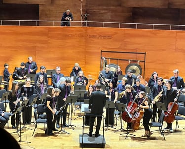 Interpretamos desde bandas sonoras a jazz, temas de desfiles y música ligera con uso vocal, traemos nuestro propio equipo e instrumental.